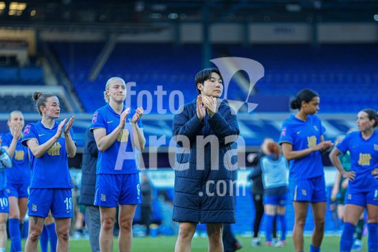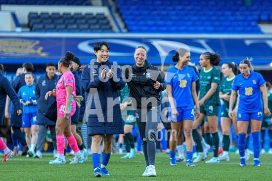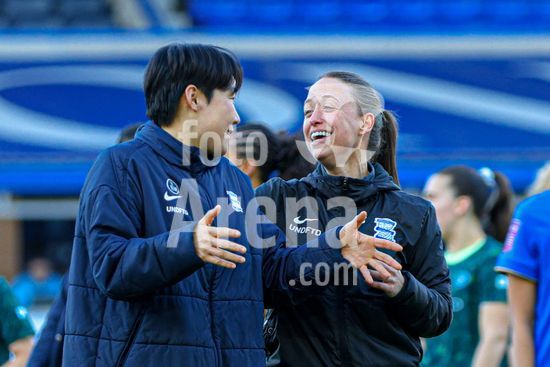 2920433 BIRMINGHAM, INGLATERRA - 6 de abril: Lee Geum-min, do Birmingham City, com a treinadora do Birmingham City, Amy Merricks, apos o apito final da partida da Copa da Inglaterra Feminina da Adobe entre Birmingham City e Manchester City, no Estadio St. Andrews, em Birmingham, Inglaterra, em 6 de abril. (Natalie Mincher/SPP)