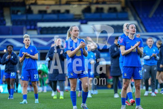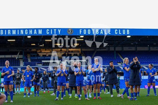 2920439 BIRMINGHAM, INGLATERRA - 6 de abril: Jogadoras do Birmingham City apos o apito final da partida da Copa da Inglaterra Feminina da Adobe entre Birmingham City e Manchester City no Estadio St. Andrews, em 6 de abril, em Birmingham, Inglaterra. (Natalie Mincher/SPP)