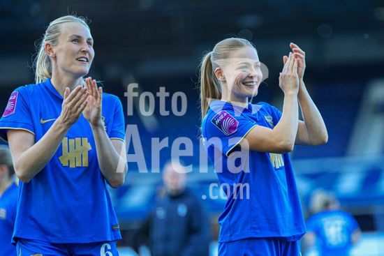 2920445 BIRMINGHAM, INGLATERRA - 6 de abril: Shannon Cooke e Lily Crosthwaite, do Birmingham City, apos o apito final da partida da Copa da Inglaterra Feminina da Adobe entre Birmingham City e Manchester City, no Estadio St. Andrews, em Birmingham, Inglaterra, em 6 de abril. (Natalie Mincher/SPP)
