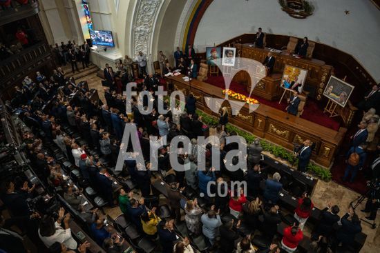 ny050126181411 Members of the National Assembly applaud as Jorge Rodríguez speaks after he was sworn in as president of the National Assembly, in Caracas, on Monday, Jan. 5, 2026. He is the brother of Venezuela?s new interim leader, Delcy Rodríguez. A new portrait of Nicolás Maduro, the ousted Venezuelan leader, and his wife, Cilia Flores, is displayed after it was unveiled earlier. (Alejandro Cegarra/The New York Times/Fotoarena)