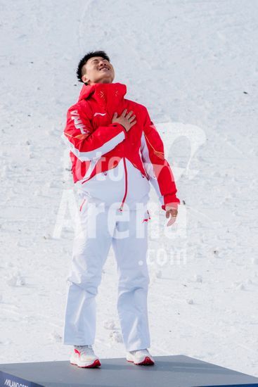 ny200226135911 Xindi Wang of China on the podium after winning gold in the freestyle skiing men?s aerials final during the 2026 Milan Cortina Winter Olympics in Livigno, Italy, on Friday, Feb. 20, 2026. (Gabriela Bhaskar/The New York Times/Fotoarena)
