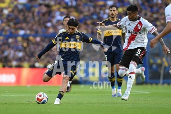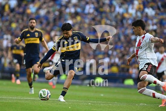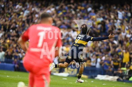 2840670 Exequiel Zeballos of Boca Juniors celebrates after scoring a goal during the match between Boca Juniors and River Plate at Estadio Alberto J. Armando, in Buenos Aires, Argentina, on November 9.