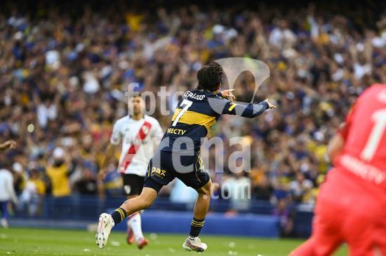 2840658 Exequiel Zeballos of Boca Juniors celebrates after scoring a goal during the match between Boca Juniors and River Plate at Estadio Alberto J. Armando, in Buenos Aires, Argentina, on November 9.