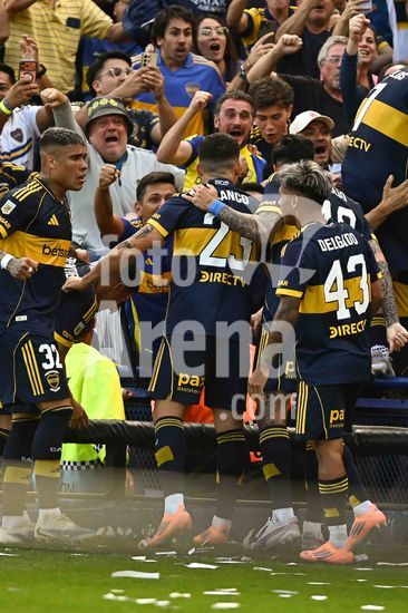 2840653 Exequiel Zeballos of Boca Juniors celebrates after scoring a goal during the match between Boca Juniors and River Plate at Estadio Alberto J. Armando, in Buenos Aires, Argentina, on November 9.