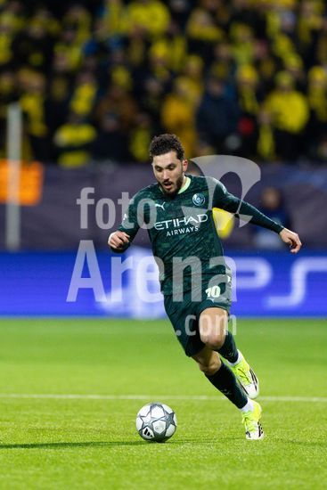 2870818 Rayan Cherki (10 Man City) controla a bola durante a partida de futebol da Liga dos Campeoes da UEFA entre Bodo/Glimt e Manchester City em Aspmyra, em Bodo, Noruega. (Ane Frosaker / SPP)