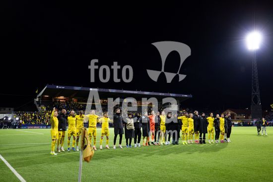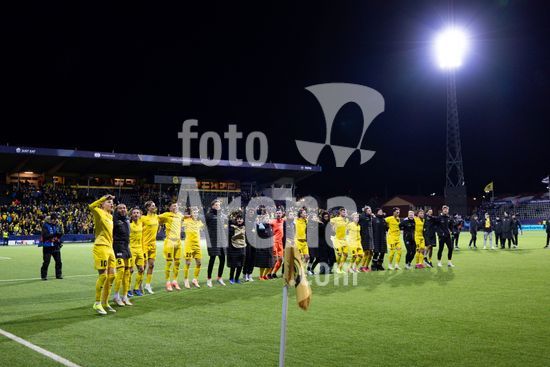 2870835 Jogadores do Bodo/Glimt comemoram a vitoria na partida de futebol da Liga dos Campeoes da UEFA entre Bodo/Glimt e Manchester City, no estadio Aspmyra, em Bodo, Noruega. (Ane Frosaker / SPP)