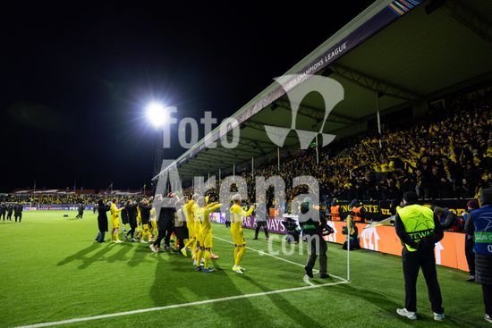 2870837 Jogadores do Bodo/Glimt comemoram a vitoria na partida de futebol da Liga dos Campeoes da UEFA entre Bodo/Glimt e Manchester City, no estadio Aspmyra, em Bodo, Noruega. (Ane Frosaker / SPP)