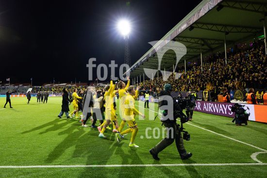 2870836 Jogadores do Bodo/Glimt comemoram a vitoria na partida de futebol da Liga dos Campeoes da UEFA entre Bodo/Glimt e Manchester City, no estadio Aspmyra, em Bodo, Noruega. (Ane Frosaker / SPP)