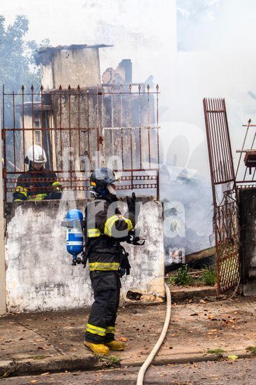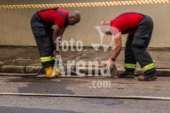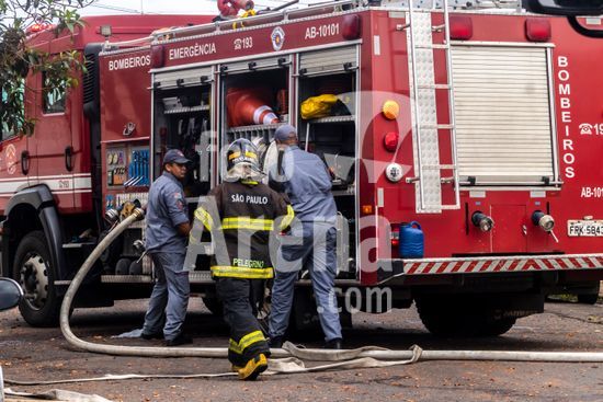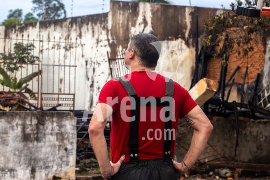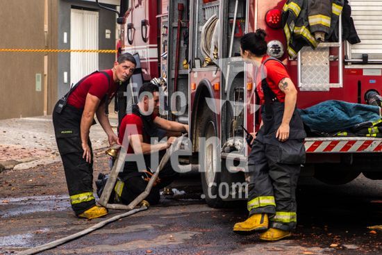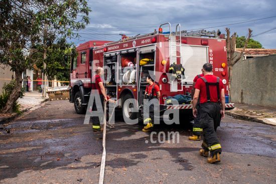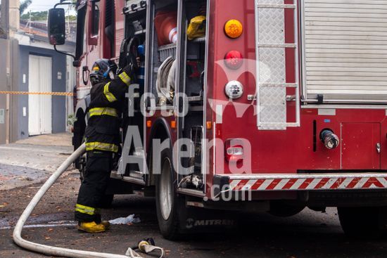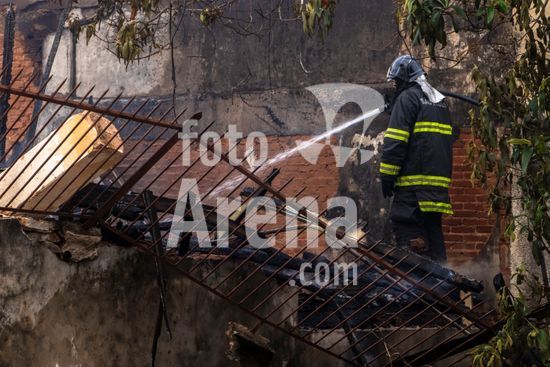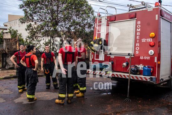 Trabalho do Corpo de Bombeiros do Estado de São Paulo para conter as chamas que consomem uma casa de madeira abandonada na zona oeste da cidade de Marília, SP. Retrata a atuação dos serviços de emergência em meio à destruição causada pelo fogo, com a estrutura da residência já em ruínas e envolta em fumaça e chamas. Este tipo de evento destaca não apenas a importância e o risco da profissão de bombeiro, mas também levanta questões sobre segurança urbana e o perigo que imóveis abandonados podem representar para a vizinhança, tornando-se focos de incêndios e outros problemas sociais. A cena serve como um poderoso material sobre prevenção de acidentes, segurança pública e o papel fundamental da defesa civil na proteção da comunidade.