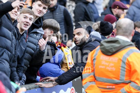 2876756 Curtis Tilt (26, Bradford City) com torcedores apos a partida da EFL Sky Bet League One entre Bradford City e Doncaster Rovers no Valley Parade em Bradford, Inglaterra, em 31 de janeiro de 2026. (Sean Chandler / SPP)