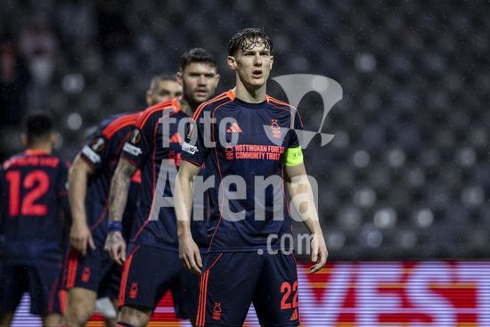 2871992 Ryan Yates, numero 22 do Nottingham Forest, observa durante o jogo da Liga Europa da UEFA entre SC Braga e Nottingham Forest no Estadio Municipal de Braga, em 22 de janeiro de 2026. (João Bravo/SPP)