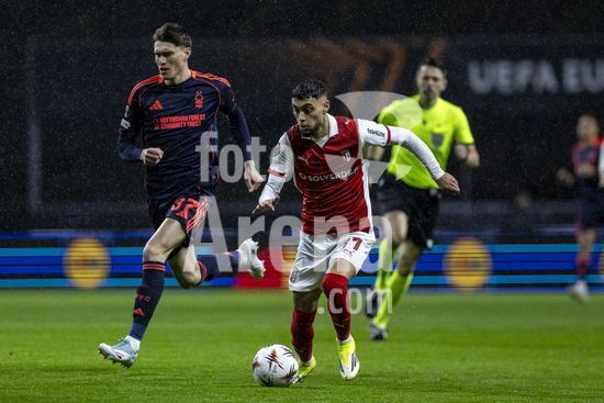 2872001 Gabriel Martinez 77, do SC Braga, controla a bola durante o jogo da UEFA Europa League entre SC Braga x Nottingham Forest, no Estadio Municipal de Braga, em 22 de janeiro de 2026. (João Bravo/SPP)