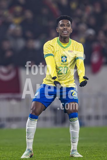 2844787 Estevao, do Brasil, gesticula durante o amistoso internacional entre Brasil e Tunisia na Decathlon Arena, em 18 de novembro de 2025, em Lille, Franca.