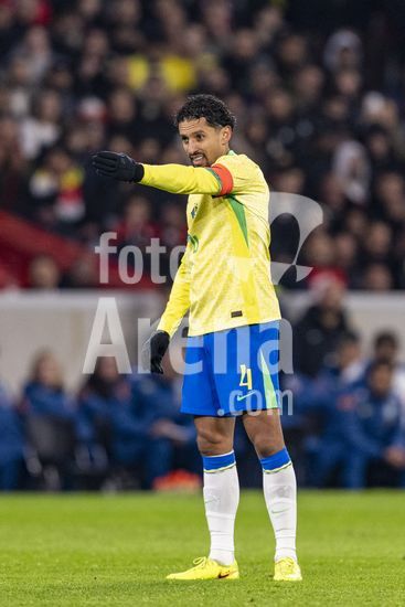 2844788 Marquinhos, do Brasil, gesticula durante o amistoso internacional entre Brasil e Tunisia na Decathlon Arena, em 18 de novembro de 2025, em Lille, Franca.