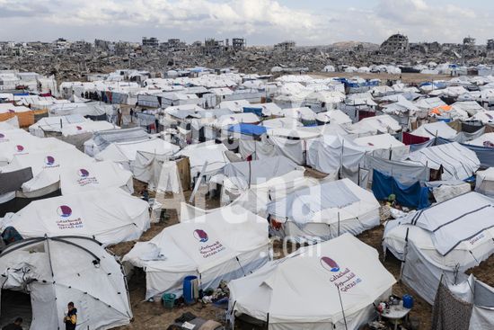 ny251125133711 A tent camp for displaced people with the ruins of a neighborhood in the distance in Gaza City, on Tuesday, Nov. 25, 2025. The Trump administration is pushing for the rapid construction of a number of residential compounds to provide housing for Palestinians in Israeli-controlled parts of the war-ravaged Gaza Strip, an effort that is fraught with risks and potential pitfalls. (Saher Alghorra/The New York Times/Fotoarena)