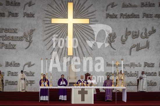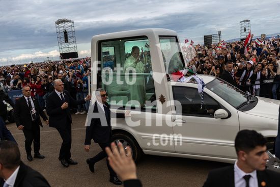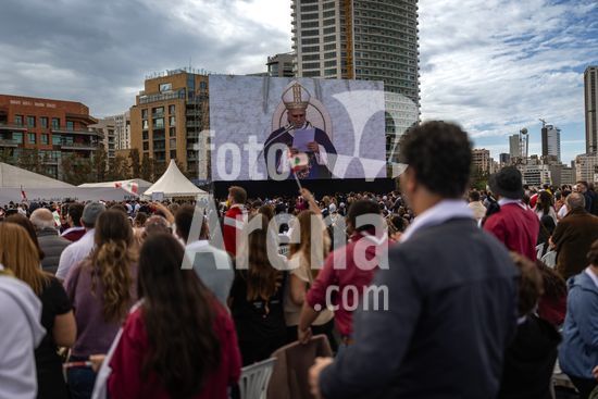ny021225103011 Pope Leo XIV arrives at the Beirut waterfront to preside over a mass in front of thousands of believers in Beirut, Lebanon, Dec. 2, 2025. His visit to a region divided by religious differences is being closely scrutinized for signs of where the pope stands on sensitive geopolitical issues. (Diego Ibarra Sanchez/The New York Times/Fotoarena)
