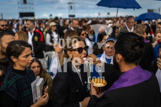 ny021225103311 A priest offers the Eucharist to believers during a mass led by Pope Leo XIV at the waterfront in Beirut, Lebanon, Dec. 2, 2025. His visit to a region divided by religious differences is being closely scrutinized for signs of where the pope stands on sensitive geopolitical issues. (Diego Ibarra Sanchez/The New York Times/Fotoarena)