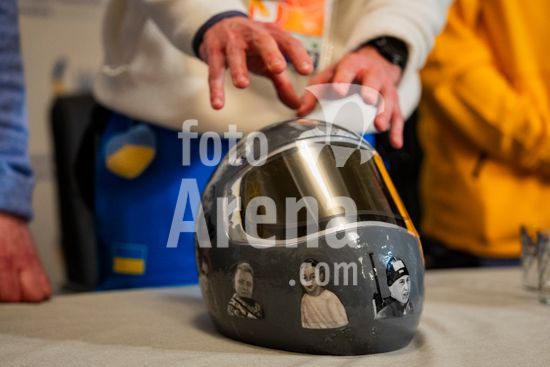 ny120226181013 The helmet of Vladyslav Heraskevych, a Ukrainian skeleton athlete who was disqualified from his events at the 2026 Milan Cortina Winter Olympics, shown during a press conference at the Ukrainian General Consulate in Milan on Thursday, Feb. 12, 2026. The IOCÕs decision to disqualify Heraskevych over his helmet honoring countrymen killed in the war with Russia touched off the biggest crisis of the Games in Italy. (Vincent Alban/The New York Times/Fotoarena)