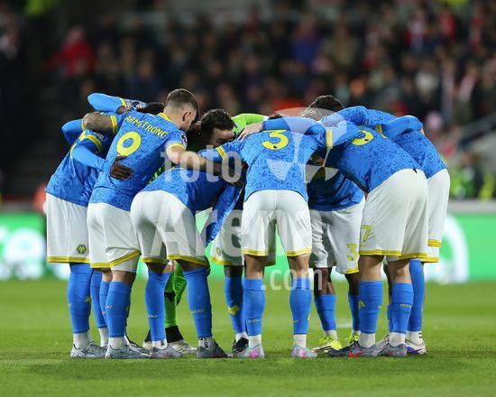 2906835 LONDRES, INGLATERRA - 16 DE MARCO: Jogadores do Wolverhampton Wanderers reunidos antes do pontape inicial da partida da Premier League entre Brentford e Wolverhampton Wanderers no Gtech Community Stadium em 16 de marco de 2026 em Londres, Inglaterra. (Jay Patel/SPP)