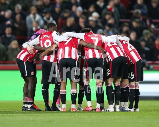 2906837 LONDRES, INGLATERRA - 16 DE MARCO: Jogadores do Brentford reunidos antes do pontape inicial da partida da Premier League entre Brentford e Wolverhampton Wanderers no Gtech Community Stadium em 16 de marco de 2026 em Londres, Inglaterra. (Jay Patel/SPP)