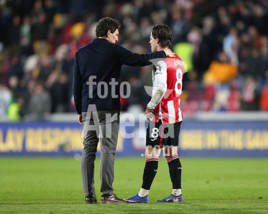 2906870 LONDRES, INGLATERRA - 16 DE MARCO: O tecnico Keith Andrews, do Brentford, conversa com Mathias Jensen, tambem do Brentford, apos o apito final da partida da Premier League entre Brentford e Wolverhampton Wanderers, no Gtech Community Stadium, em 16 de marco de 2026, em Londres, Inglaterra. (Jay Patel/SPP)