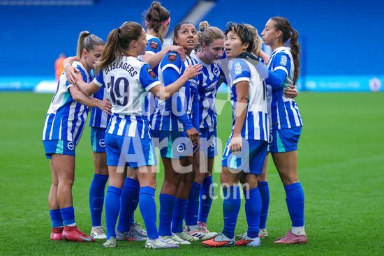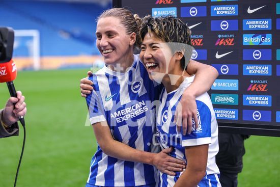 2844158 Maisie Symonds (8 Brighton & Hove Albion) e Kiko Seike (11 Brighton & Hove Albion) durante a partida da Barclays Women's Super League entre Brighton & Hove Albion Women e Leicester City Women, no Broadfields Stadium, em Crawley, Inglaterra. (Neil Holmes/SPP)
