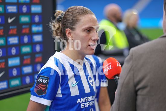 2844157 Maisie Symonds (8 Brighton & Hove Albion) entrevistada apos a partida da Barclays Women's Super League entre Brighton & Hove Albion Women e Leicester City Women, no Broadfields Stadium, em Crawley, Inglaterra. (Neil Holmes/SPP)