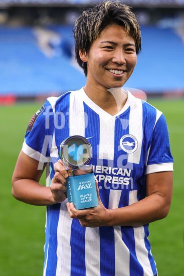 2844160 Kiko Seike (11 Brighton & Hove Albion) foi eleita a melhor jogadora da partida durante o jogo da Barclays Women's Super League entre Brighton & Hove Albion Women e Leicester City Women, no Broadfields Stadium, em Crawley, Inglaterra. (Neil Holmes/SPP)