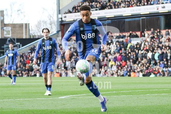 2904302 BURNLEY, INGLATERRA - 14 de marco: Alex Scott, do Bournemouth, controla a bola durante a partida da Premier League entre Burnley e AFC Bournemouth no Turf Moor, em 14 de marco de 2026, em Burnley, Inglaterra. (Sean Chandler / SPP)