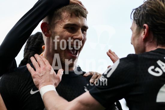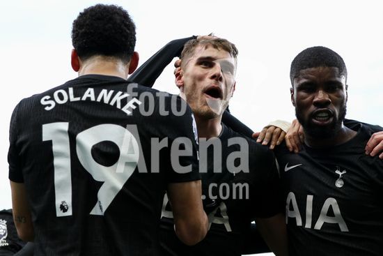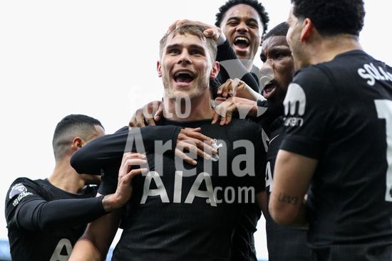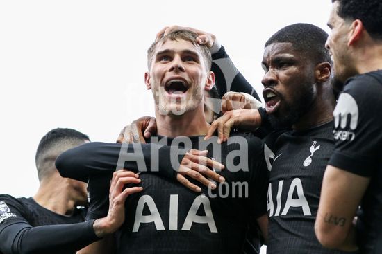 2872910 Micky van de Ven (37, Tottenham Hotspur) comemora seu gol durante a partida da Premier League entre Burnley e Tottenham Hotspur no Turf Moor em Burnley, Inglaterra, em 24 de janeiro de 2026. (Sean Chandler / SPP)