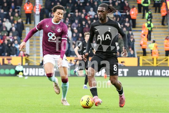 2872890 Yves Bissouma (8 Tottenham Hotspur) controla a bola durante a partida da Premier League entre Burnley e Tottenham Hotspur no Turf Moor em Burnley, Inglaterra, em 24 de janeiro de 2026. (Sean Chandler / SPP)