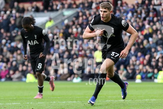 2872884 Micky van de Ven (37, Tottenham Hotspur) comemora seu gol durante a partida da Premier League entre Burnley e Tottenham Hotspur no Turf Moor em Burnley, Inglaterra, em 24 de janeiro de 2026. (Sean Chandler / SPP)