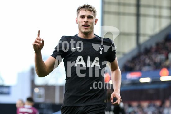 2873588 Micky van de Ven (37, Tottenham Hotspur) comemora seu gol durante a partida da Premier League entre Burnley e Tottenham Hotspur no Turf Moor em Burnley, Inglaterra, em 24 de janeiro de 2026. (Sean Chandler / SPP)
