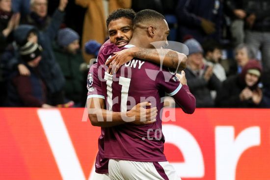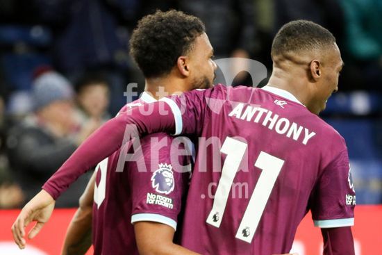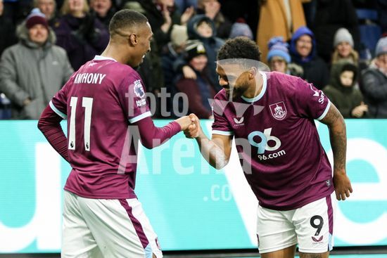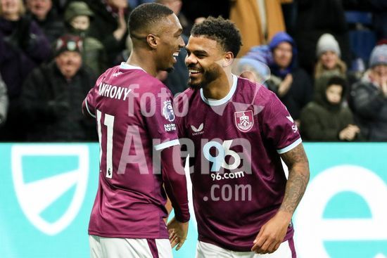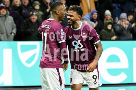 2873591 Lyle Foster (9 Burnley) comemora seu gol com Jaidon Anthony (11 Burnley) durante a partida da Premier League entre Burnley e Tottenham Hotspur em Turf Moor em Burnley, Inglaterra, em 24 de janeiro de 2026. (Sean Chandler / SPP)