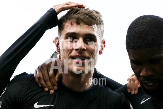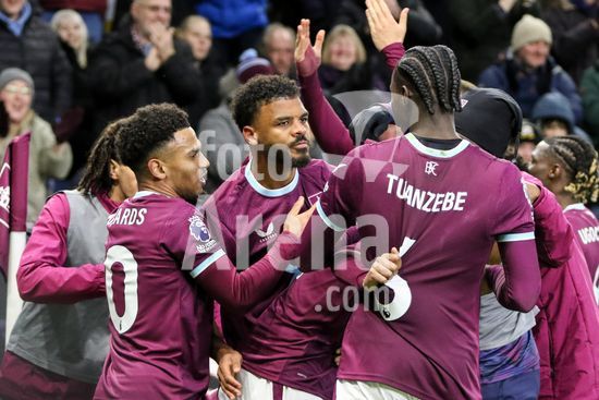 2872963 Lyle Foster (9 Burnley) comemora seu gol com Jaidon Anthony (11 Burnley) durante a partida da Premier League entre Burnley e Tottenham Hotspur em Turf Moor em Burnley, Inglaterra, em 24 de janeiro de 2026. (Sean Chandler / SPP)
