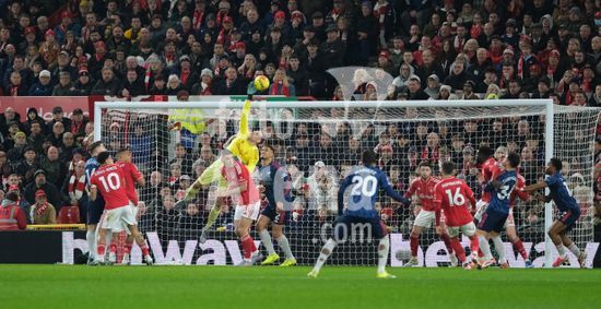 2869375 Matz Sels, do Nottingham Forest, faz a defesa durante a partida da Premier League entre Nottingham Forest e Arsenal, no City Ground, em Nottingham. (Paul Bonser/Sports Press Photo / SPP)