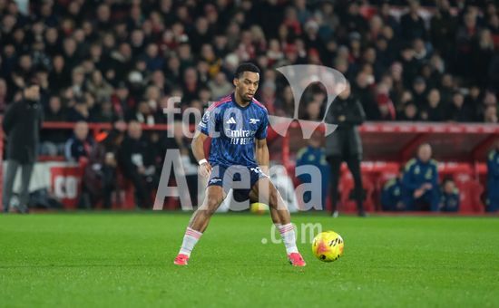 2869378 Jurrien Timber, do Arsenal, em acao durante a partida de futebol da Premier League entre Nottingham Forest e Arsenal, no City Ground, em Nottingham. (Paul Bonser/Sports Press Photo / SPP)