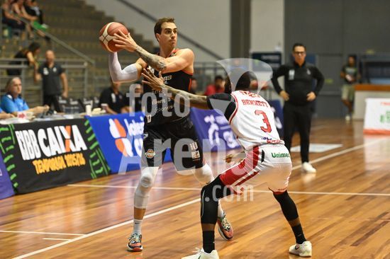 2871293 Imagens da partida de basquete entre o Caxias do Sul Basquete e o Franca, disputada no Ginásio do SESI, válida pelo NBB 25/26. Caxias do Sul, RS (21).