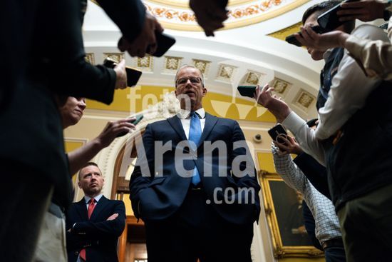 ny020426090212 Senate Majority Leader John Thune, (R-S.D.) talks to reporters at the Capitol on the morning of Thursday, April 2, 2026. The Senate sent a bipartisan funding deal to reopen the Department of Homeland Security back to the House on Thursday morning. Still, it was unclear whether the chamber would take up the legislation amid opposition from hard-line conservatives. (Tierney L. Cross/The New York Times/Fotoarena)