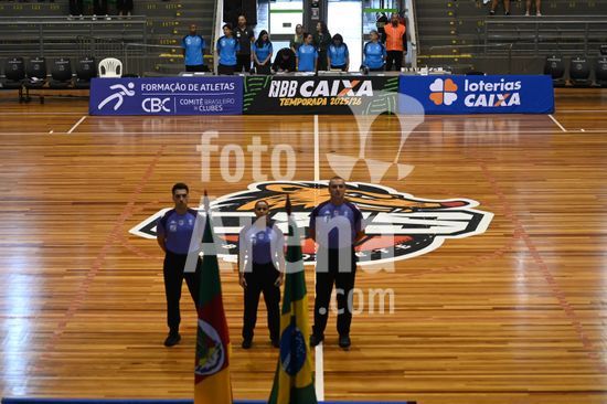 2871249 Imagens da partida de basquete entre o Caxias do Sul Basquete e o Franca, disputada no Ginásio do SESI, válida pelo NBB 25/26. Arbitragem. Caxias do Sul, RS (21).