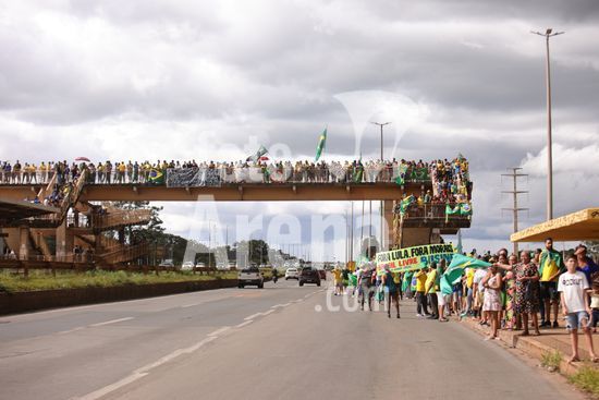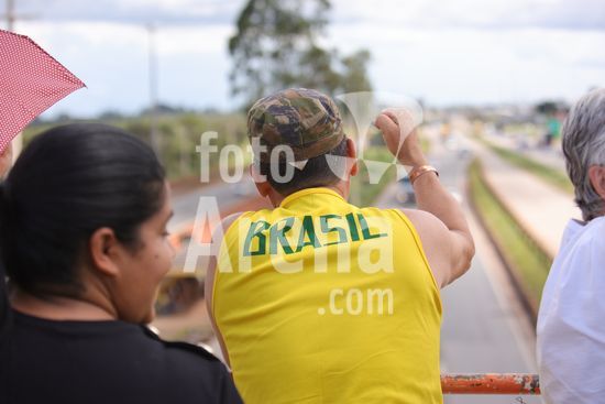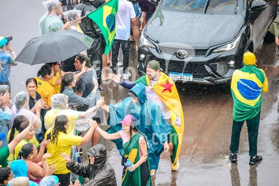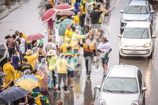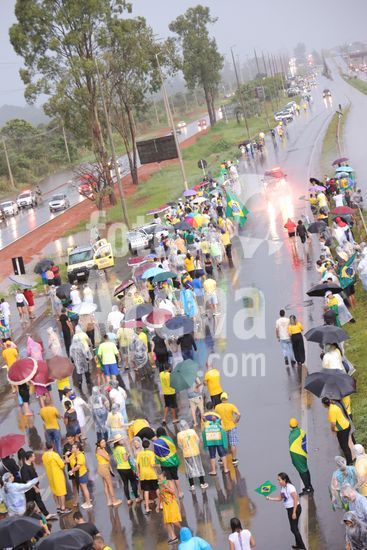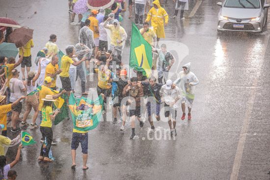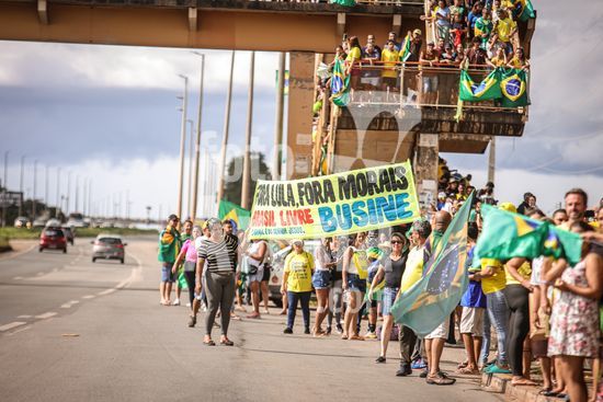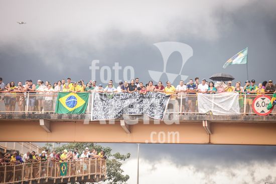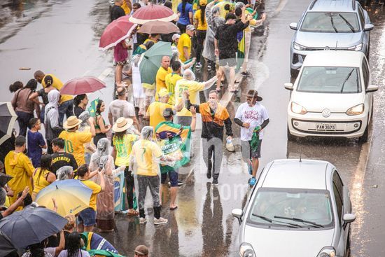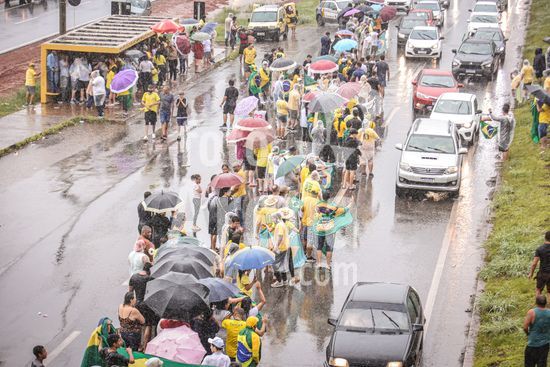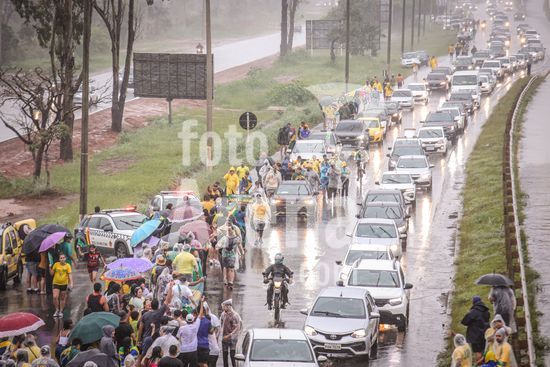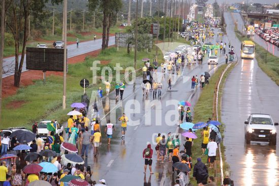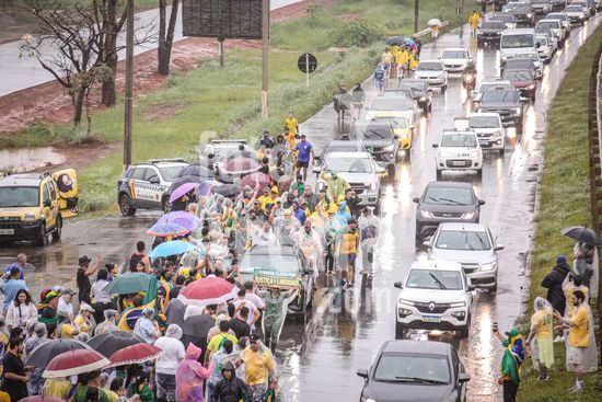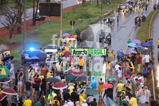 O deputado Nikolas Ferreira (PL-MG) e seus apoiadores fazem uma caminhada intitulada ?Caminhada pela Justiça e Liberdade?, na BR 40, na altura da cidade de Santa Maria, no Distrito Federal. O movimento ?Acorda Brasil? terá seu ponto alto ao meio-dia deste domingo (25), em um ato público na praça do Cruzeiro, considerado o ponto mais alto no plano piloto de Brasília, nas proximidades do Memorial JK.