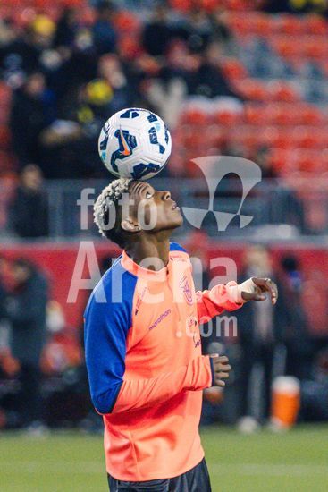 2842818 Toronto, Canada, 13 de novembro de 2025. Junior Hoilett aquecendo durante o amistoso internacional masculino entre Canada e Equador no BMO Field em Toronto, Canada (SOMENTE PARA USO EDITORIAL). (Curtis Wong/SPP)