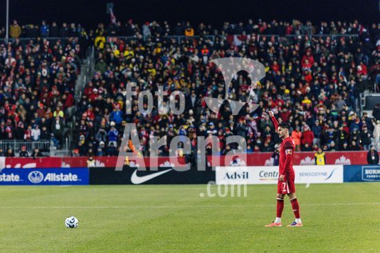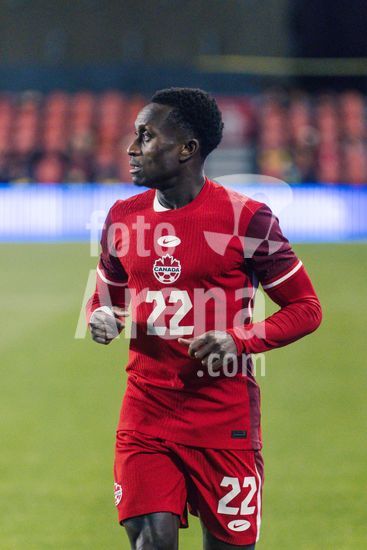 2842806 Toronto, Canada, 13 de novembro de 2025. Nathan-Dylan Saliba aquecendo durante o amistoso internacional masculino entre Canada e Equador no BMO Field em Toronto, Canada (SOMENTE PARA USO EDITORIAL). (Curtis Wong/SPP)
