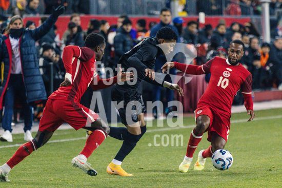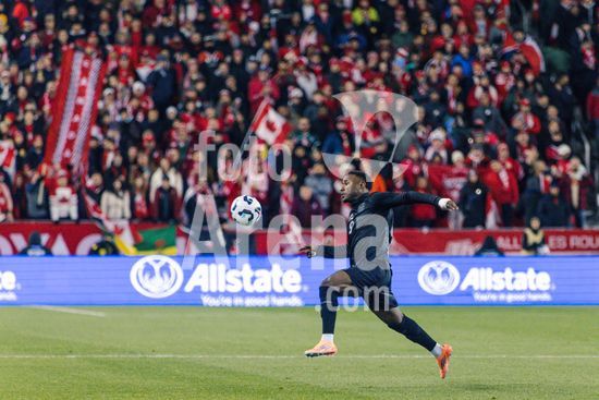 2842796 Toronto, Canada, 13 de novembro de 2025. Richie Laryea (22 Canada) em acao durante o amistoso internacional masculino entre Canada e Equador no BMO Field em Toronto, Canada (SOMENTE PARA USO EDITORIAL). (Curtis Wong/SPP)