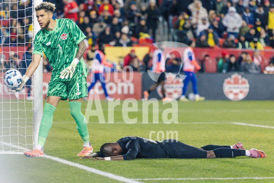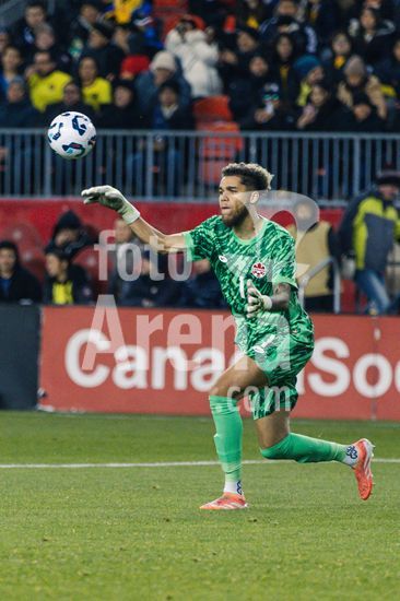 2842799 Toronto, Canada, 13 de novembro de 2025. Dayne St. Clair (1 Canada) em acao durante o amistoso internacional masculino entre Canada e Equador no BMO Field em Toronto, Canada (SOMENTE PARA USO EDITORIAL). (Curtis Wong/SPP)
