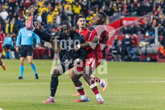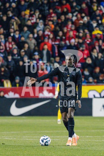 2842797 Toronto, Canada, 13 de novembro de 2025. Kamal Miller (4 Canada) em acao durante o amistoso internacional masculino entre Canada e Equador no BMO Field em Toronto, Canada (SOMENTE PARA USO EDITORIAL). (Curtis Wong/SPP)
