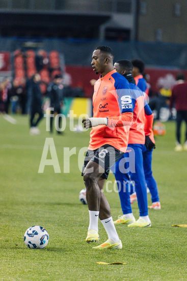 2842795 Toronto, Canada, 13 de novembro de 2025. Nilson Angulo (20 Equador) aquecendo antes do amistoso internacional masculino entre Canada e Equador no BMO Field em Toronto, Canada (SOMENTE PARA USO EDITORIAL). (Curtis Wong/SPP)