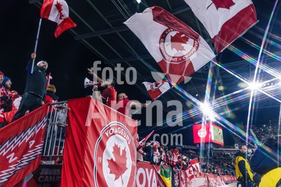 2842811 Toronto, Canada, 13 de novembro de 2025. Torcedores canadenses vibrando durante o amistoso internacional masculino entre Canada e Equador no BMO Field, em Toronto, Canada (APENAS PARA USO EDITORIAL). (Curtis Wong/SPP)