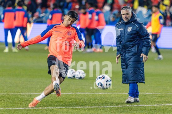 2842814 Toronto, Canada, 13 de novembro de 2025. Alan Franco (21, Equador) aquecendo antes do amistoso internacional masculino entre Canada e Equador no BMO Field em Toronto, Canada (SOMENTE PARA USO EDITORIAL). (Curtis Wong/SPP)
