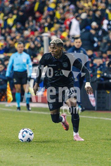 2842817 Toronto, Canada, 13 de novembro de 2025. Nilson Angulo (20 Equador) em acao durante o amistoso internacional masculino entre Canada e Equador no BMO Field em Toronto, Canada (SOMENTE PARA USO EDITORIAL). (Curtis Wong/SPP)